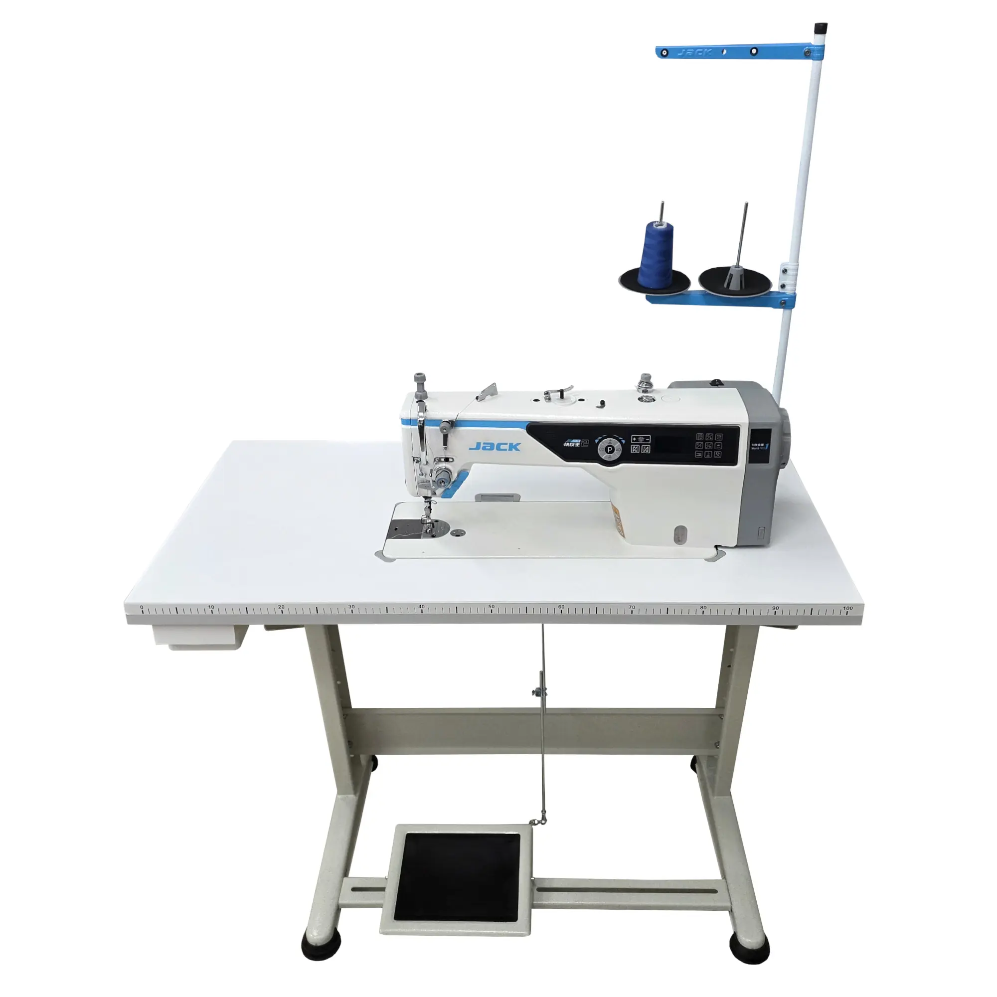 JACK A5E-B to nowoczesna stebnówka 1-igłowa wyposażona w system dopasowania parametrów szycia do grubości materiałów. Stebnówka Jack A5E-B wyposażona jest w system obcinania nici skracający długość nitki po obcięciu do 3,5 mm. Automatyczna reakcja na zmianę grubości szytego materiału oraz połączenie korelacji podawania materiału i siły wkłucia igły w czasie rzeczywistym gwarantują stabilne szycie różnych materiałów bez potrzeby regulacji maszyny. Stebnówka Jack A5E-B została wyposażona w czip sztucznej inteligencji ”Octopus Dual-Core AI” - ulepszone inteligentne rozwiązanie zapewniające automatyczną zmianę parametrów maszyny adekwatnie do grubości szytego materiału w czasie rzeczywistym. Stebnówka Jack A5E-B posiada transport dolny ząbkowy oraz automatyczne funkcje takie jak: