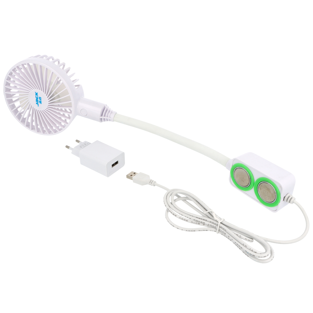 4. Dedykowany wiatrak Jack - do zestawu dołączony został dedykowany wiatrak od producenta Jack, który znacznie poprawia komfort pracy przy urządzeniu. Wystarczy go podłączyć do gniazdka elektrycznego lub bezpośrednio do gniazda USB w maszynie, aby móc cieszyć się udogodnieniem. Mocowany jest na magnes oraz ma elastyczne ramię. Kolor wiatraczka wybierany losowo: biały/fioletowy/zielony