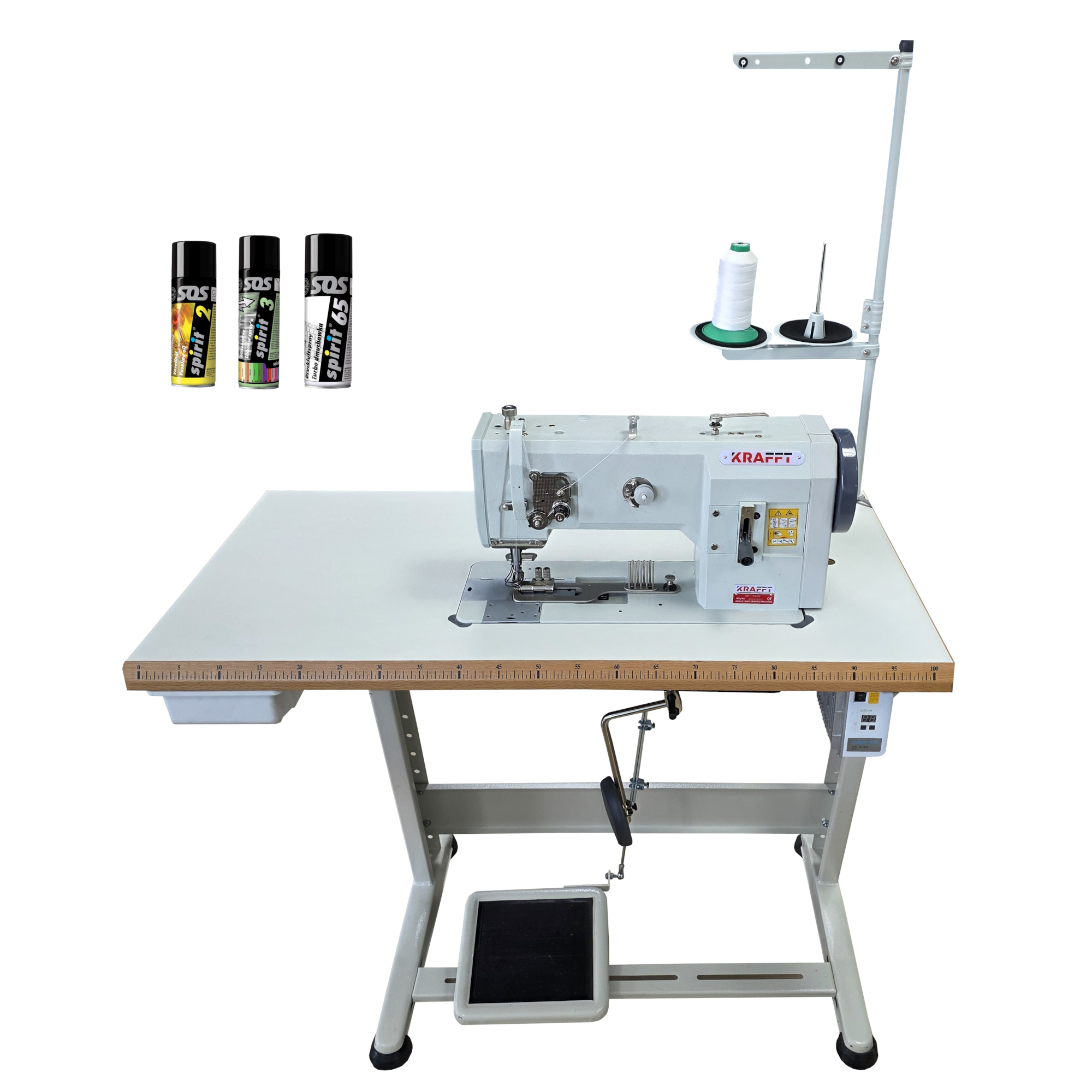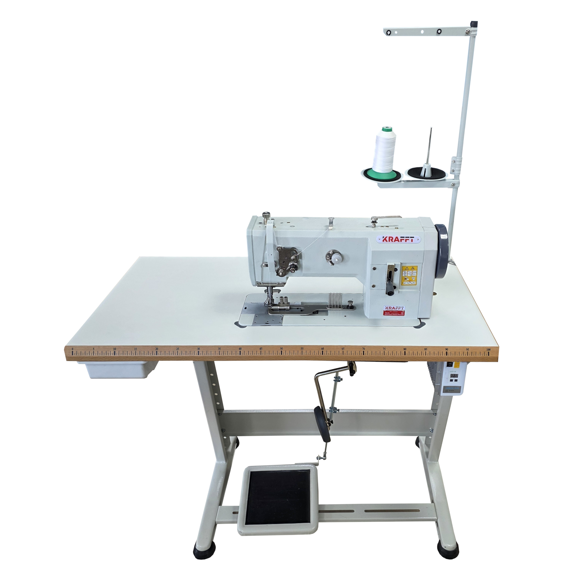 Krafft KF-1245V to stebnówka 1-igłowa z potrójnym transportem (igła, ząbki i stopka). Maszyna przystosowana jest do lamowania. Stebnówka Krafft KF-1245V przeznaczona jest do lamowania materiałów średnich i ciężkich tj. tapicerka, dywaniki, materiały techniczne itp. Maksymalna prędkośc szycia wynosi 2000 ściegów/minutę.