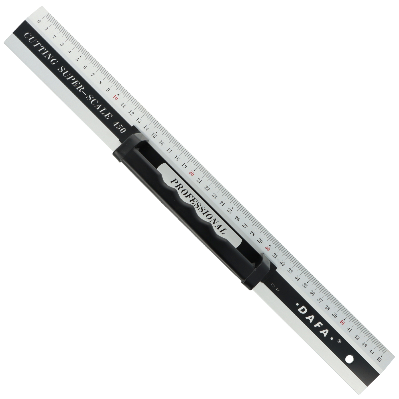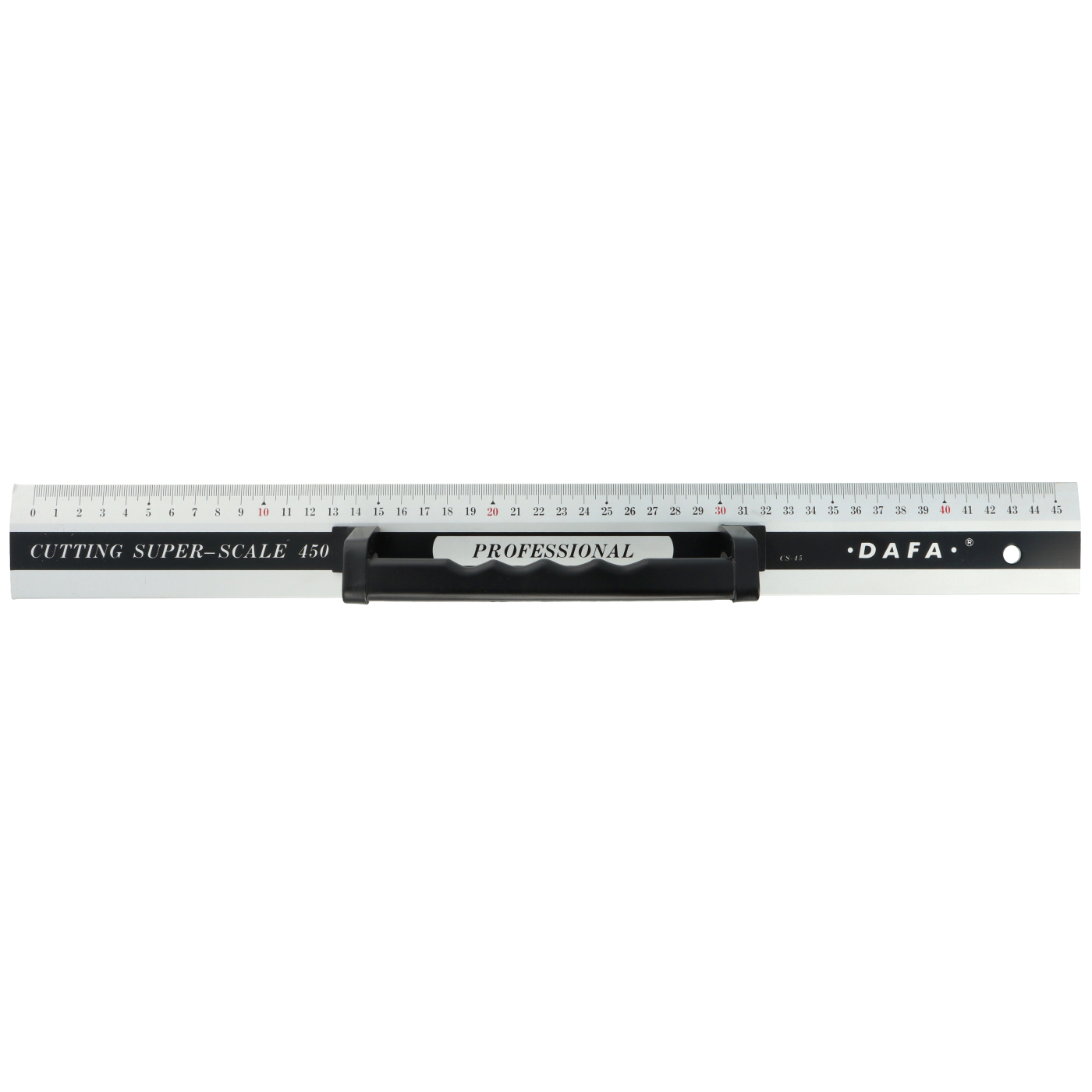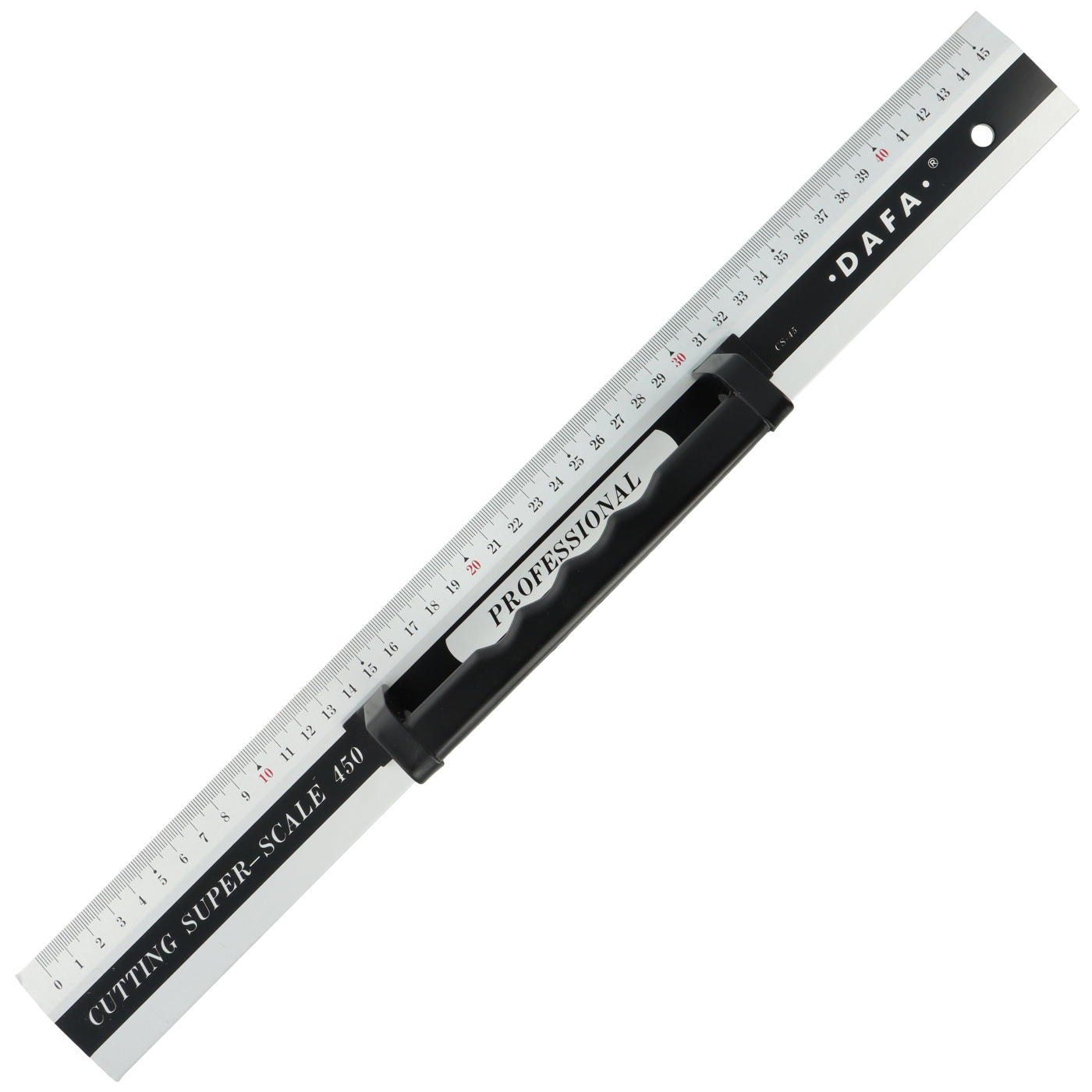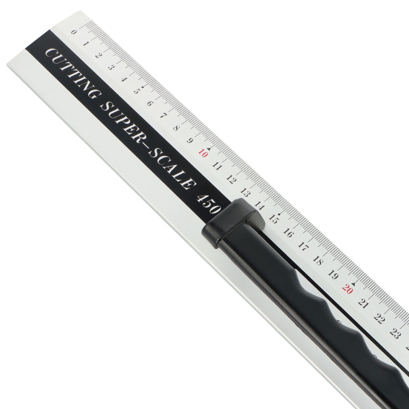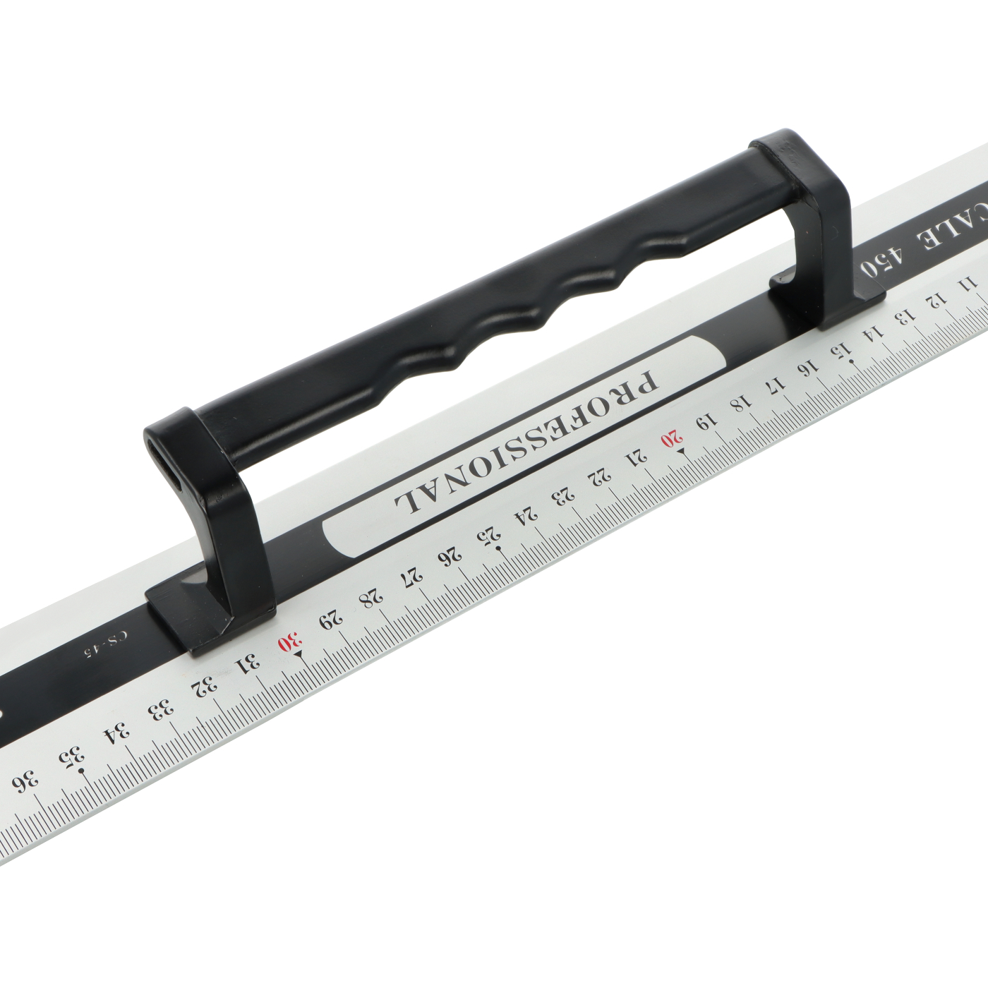 Profesjonalny liniał aluminiowy z uchwytem, o długości 45 cm, pełniący również funkcję linijki krawieckiej. Wykonany z lekkiego, a jednocześnie wytrzymałego aluminium. Wyposażony w duży, wygodny uchwyt, gumę antypoślizgową oraz magnesy na spodzie, które zapobiegają przesuwaniu się podczas pracy.