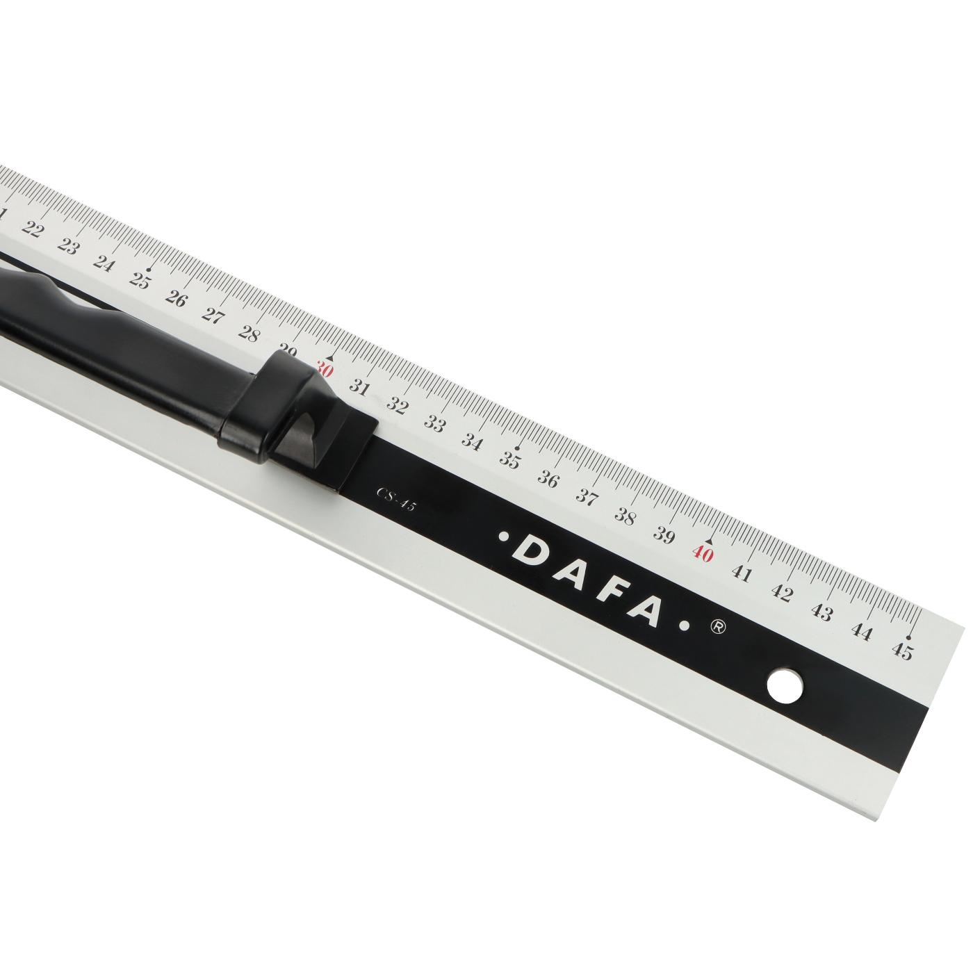 Dzięki grubej krawędzi idealnie nadaje się do prowadzenia noża, a czytelna podziałka metryczna zapewnia precyzyjne pomiary i trasowanie.