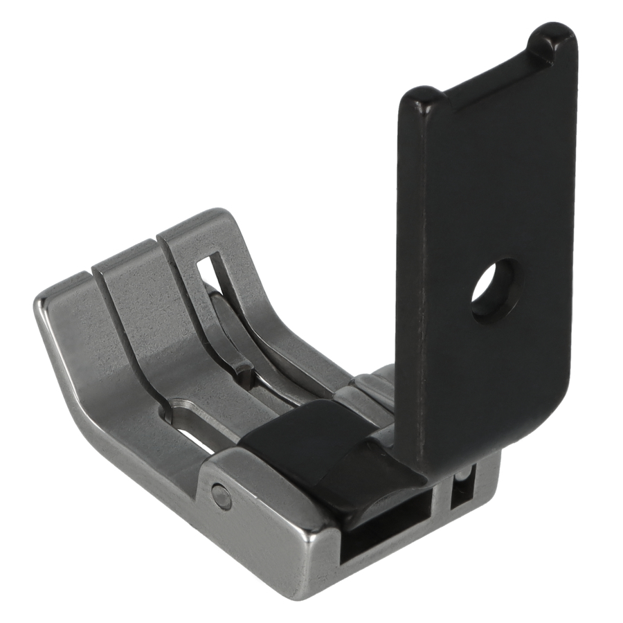 Profesjonalna stopka krawędziowa z prowadnikiem po lewej stronie (2 mm). Przeznaczona do stębnówek dwuigłowych o rozstawie igieł 6,4 mm. Ułatwia szycie blisko krawędzi i równomierne prowadzenie szwu na różnych materiałach.