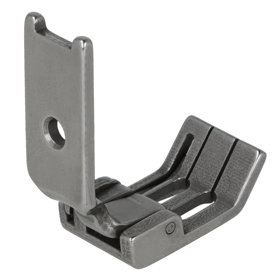 Profesjonalna stopka krawędziowa z prowadnikiem po prawej stronie (1 mm). Przeznaczona do stębnówek dwuigłowych o rozstawie igieł 6,4 mm. Ułatwia szycie blisko krawędzi i równomierne prowadzenie szwu na różnych materiałach.