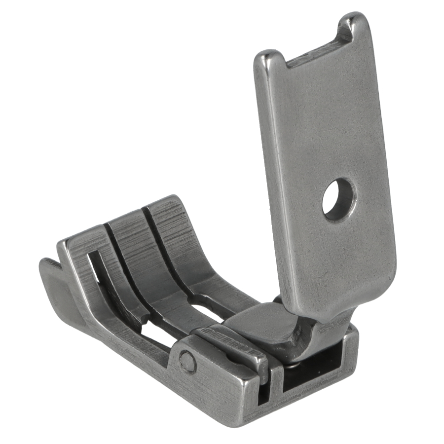 Profesjonalna stopka krawędziowa z prowadnikiem po prawej stronie (2 mm). Przeznaczona do stębnówek dwuigłowych o rozstawie igieł 6,4 mm. Ułatwia szycie blisko krawędzi i równomierne prowadzenie szwu na różnych materiałach.