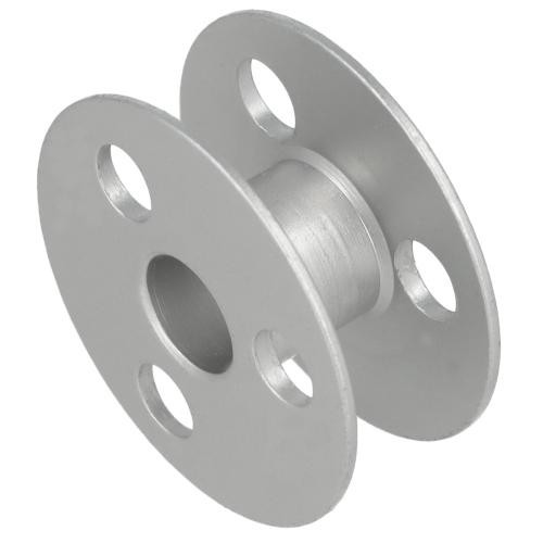 Szpulka metalowa z trzema dziurkami, bez nacięcia.
